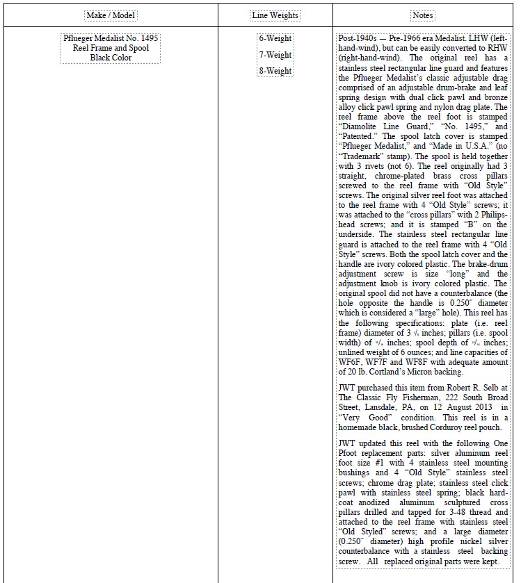 Joes meticulous nature is reflected in his personal notes of his tackle, which are here reproduced for each item. They provide a provenance and complete description. My notes concerning condition and description are provided separately and marked with an asterisk *. Every item listed was lovingly acquired and cared for and is in excellent, near mint or mint, unused condition unless otherwise noted.