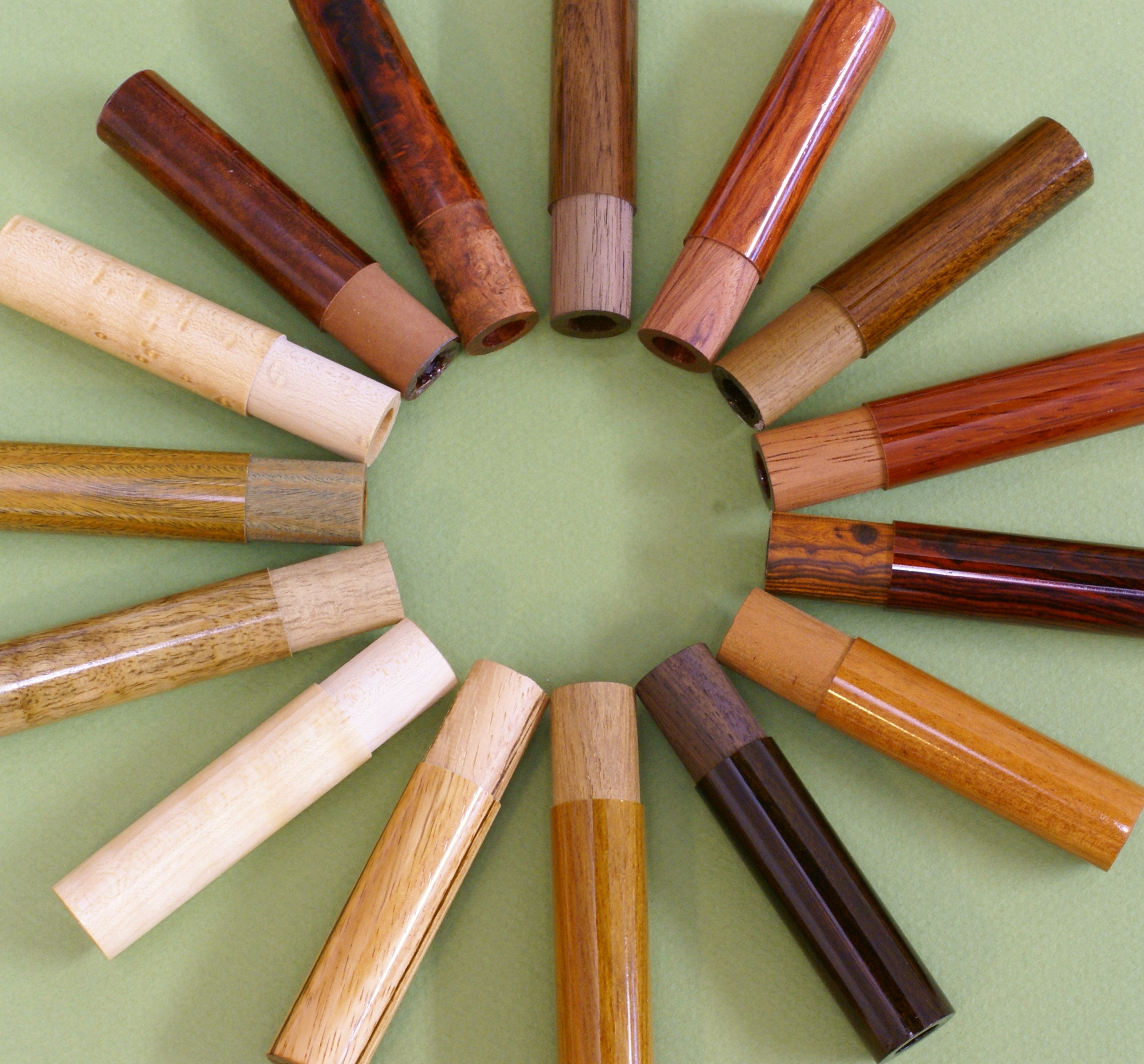 Wood Spacers: All-natural wood inserts for Struble seats - available in 15 finished woods in 4 price categories. Picture shows all available woods in order as listed below, with walnut at 12 o'clock. Click on picture for large version: